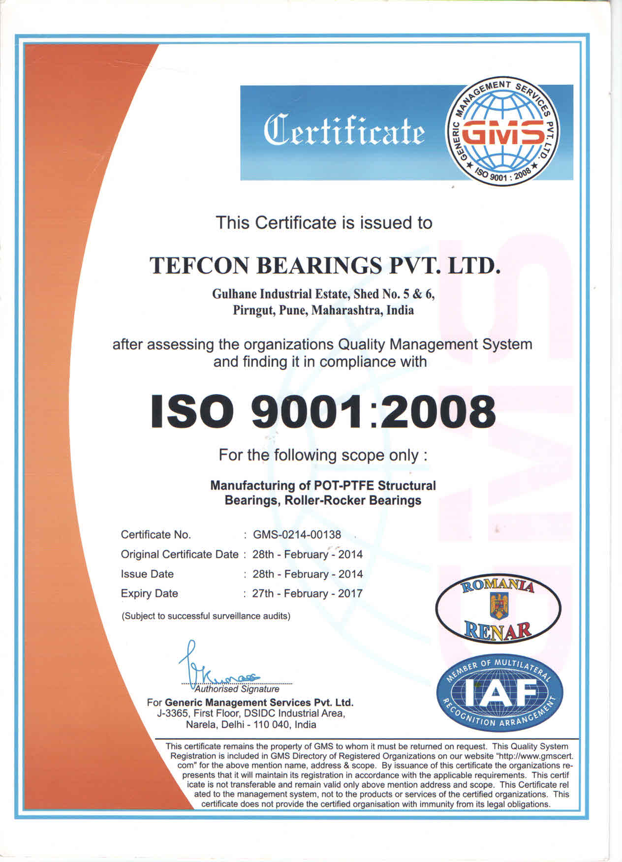 The Tefcon Bearing Pvt. Ltd Company was started in 1984 for manufacturing of POT-PTFE bearings. The Company manufactures various type of POT Bearings for Flyovers, Bridges, Aqueducts and PTFE / SS Slide Bearings for the Electro static Precipitators and other uses. The company has supplied up to 12500 KN vertical load carrying capacity bearings. Till date, company has supplied POT-PTFE bearings for more than 150 bridges, flyovers and aqueducts. Most of the large construction companies are our clients for bridges and flyovers.